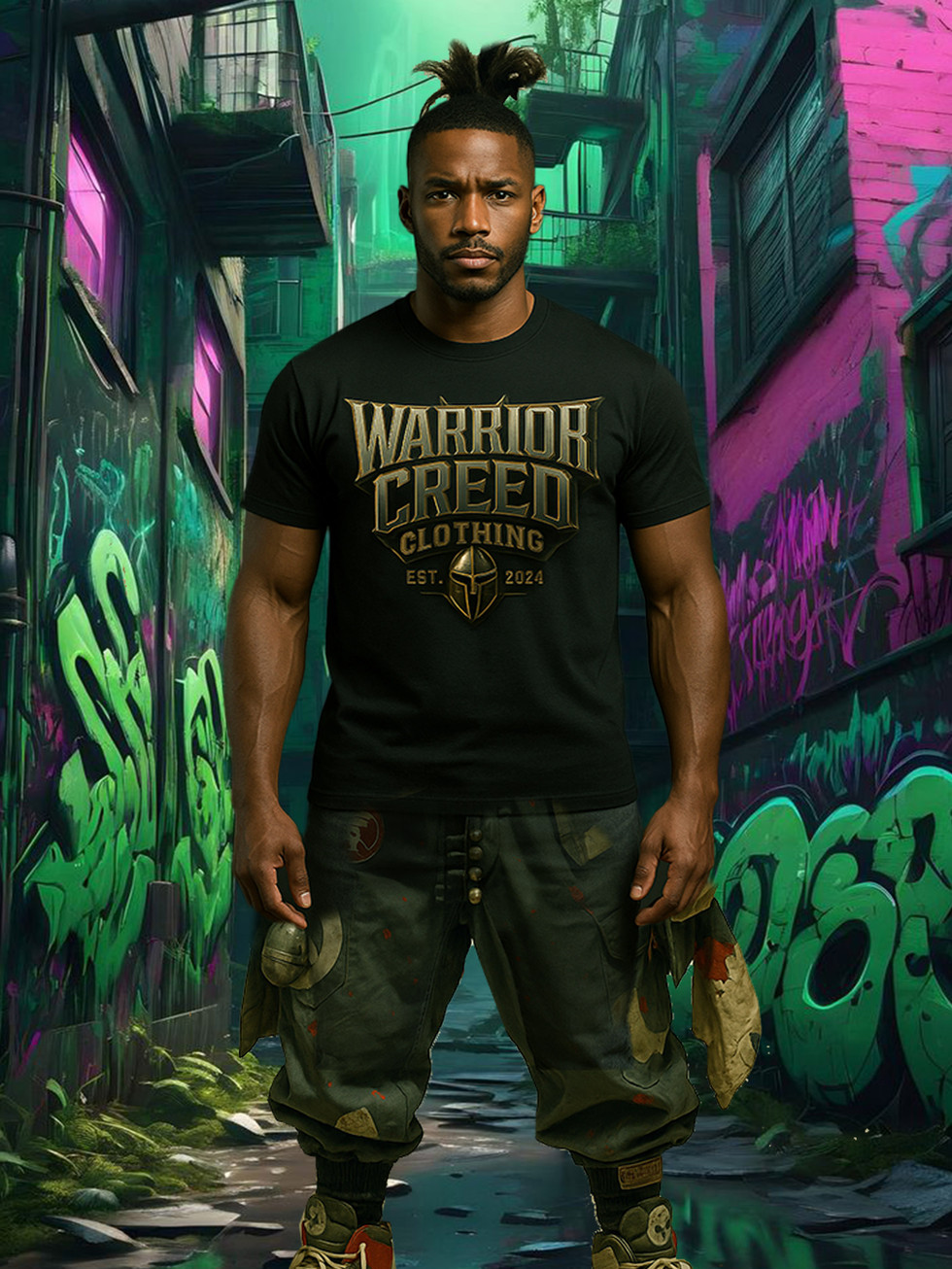 Warrior Creed Gold Crest T — Wear Your Crown.This ain’t just a tee, it’s a statement. Heavy cotton. Clean cut. Front and center — that gold crest, reppin’ honor, strength, and the fight in your blood. Built for the ones who move different, stand tall, and never fold.From the block to the boulevard, this premium piece brings that perfect mix of grit and class. The gold pops hard against the rich base, letting everybody know you roll with pride and power.This is more than fabric — it’s a badge. A flag. A mark that you’re part of something bigger.Warrior Creed Gold Crest T. — claim it before it’s gone.I'm a product description. I'm a great place to add more details about your product such as sizing, material, care instructions and cleaning instructions.
